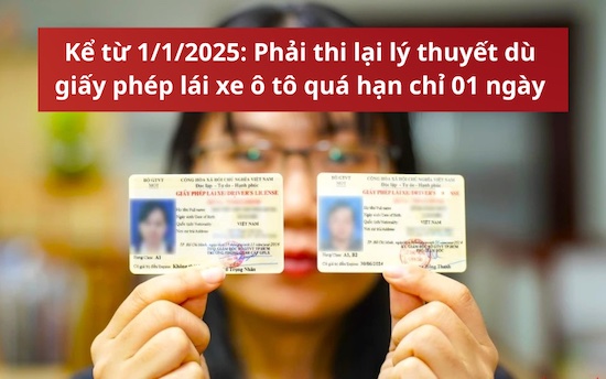 GPLX quá hạn 1 ngày phải thi lại lý thuyết bắt đầu từ ngày 01/01/2025