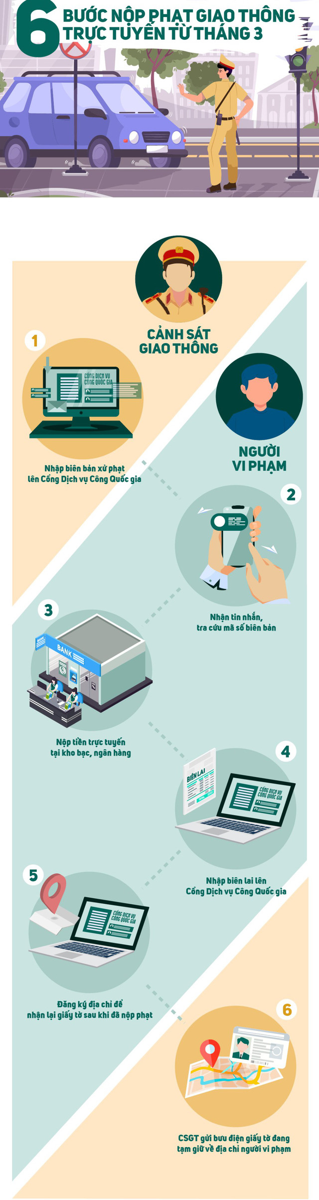 Để người dân thực hiện được hình thức nộp phạt trên, Phòng Cảnh sát giao thông hướng dẫn người vi phạm cần đăng ký một tài khoản đăng nhập tại Cổng Dịch vụ công quốc gia theo địa chỉ: https://dichvucong.gov.vn/p/home/dvc-thanh-toan-vi-pham-giao-thong.html, sau đó thực hiện theo các hướng dẫn sau.