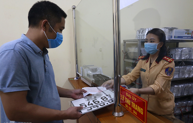 Ít phút sau, anh Phong được thông báo ấn nút để lấy biển số và nhận giấy hẹn sang phòng cấp biển. "Đây là lần thứ hai tôi đi đăng ký xe trong hai năm qua, lần này rất khác vì có thể làm thủ tục trực tuyến thay vì phải đi lại nhiều, mang theo cả chục loại giấy tờ", anh Phong nói.