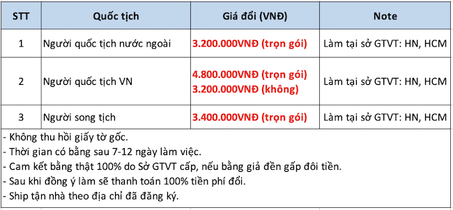 Lưu ý: Thời hạn của bằng lái khi đổi từ nước ngoài về Việt Nam sẽ phụ thuộc vào thời hạn của Visa và thẻ tạm trú. Thời hạn bằng lái tối đa là 5 năm. Ngoài ra đối với người Việt Nam có bằng nước ngoài đổi sang bằng lái Việt Nam tại Sở GTVT Hà Nội thì sau khi chụp ảnh thì cần xin chứng nhận từ Đại sứ quán hoặc Lãnh sự Quán tại Việt Nam (nước cấp bằng).