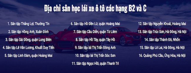 Danh sách 16 sân tập lái xe oto hạng B1, B2 và C tại Hà Nội